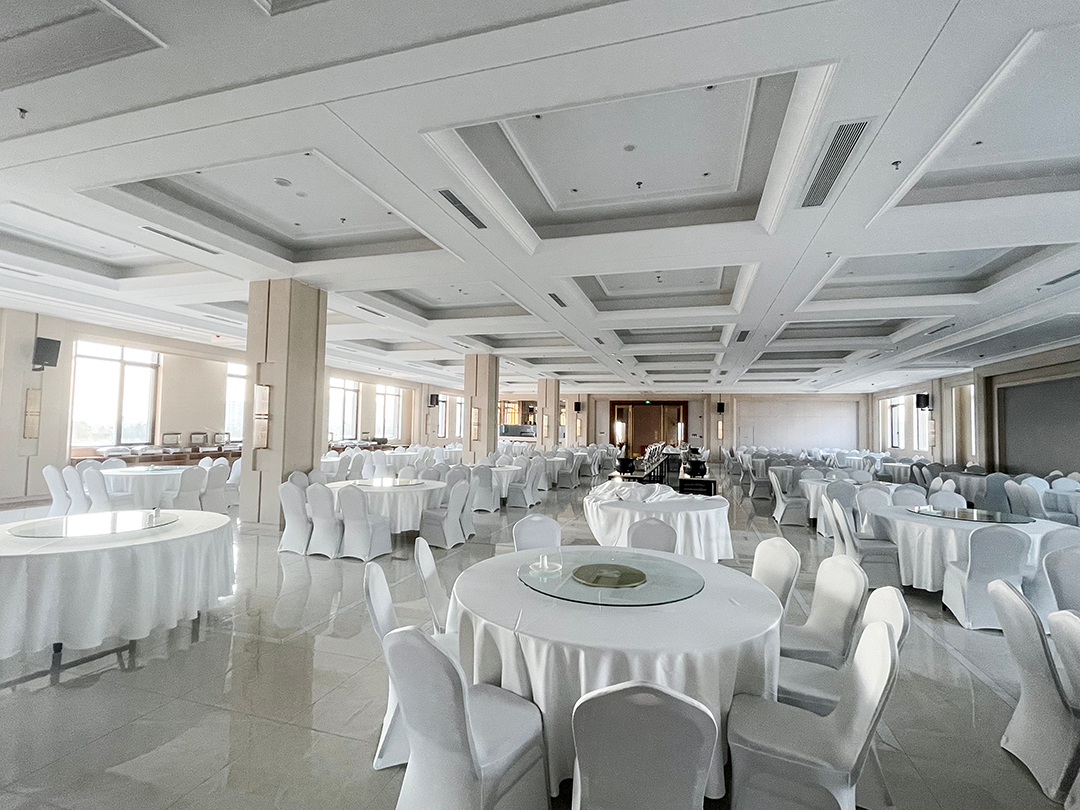 宴會(huì)廳需滿足大中型集會(huì)、聚餐及慶典活動(dòng)等功能需求。宴會(huì)廳同樣采用了若干只M10固定安裝音箱好和若干臺(tái)MI系列數(shù)字功放。