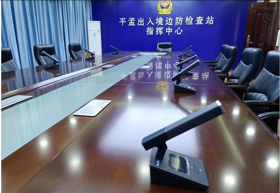 廣西平孟出入境邊防檢查站指揮中心采用HUAIN華音無線雙振膜會議系統(tǒng)(HY-U5880系列)搭配可視化管理系統(tǒng)、中央控制系統(tǒng)、擴聲系統(tǒng)等會議系統(tǒng)來推動智慧檢查站建設(shè)。