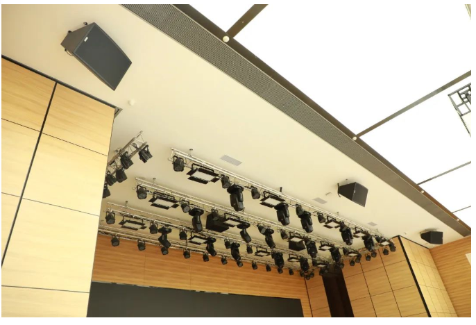 整套系統(tǒng)鏈路簡潔,路由靈活方便,具有較高的安全可靠性。擴聲音箱具有高輸出、寬頻帶覆蓋控制和杰出的保真度,為人才會堂提供足夠的聲壓級和傳聲增益。