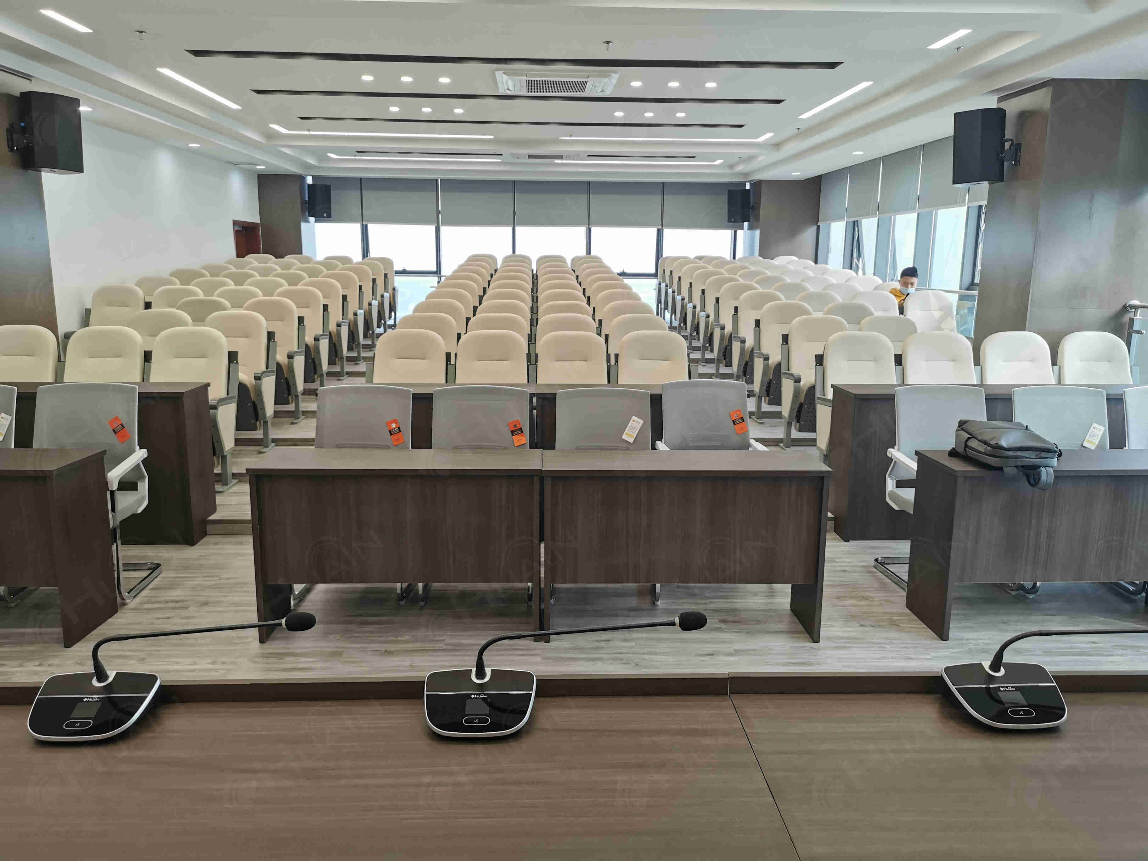 HUAIN音視頻無線會議系統解決方案,這是一套由HUAIN高保真無線會議系統(HY-5830系列),配套HUAIN中央控制系統、音頻擴聲系統等組成的無線會議設備。