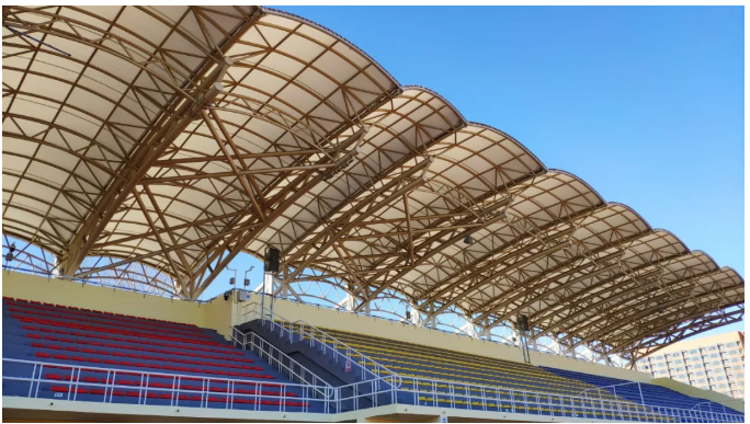 由于該體育場為改造項目,建設方無法提供音箱在頂棚安裝的條件,因此只能訂做安裝結構進行安裝。