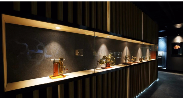本工程飛亞達博物館博物館分為一層和二層兩個部分。一層主要以企業(yè)展廳為主,可用面積為700㎡左右。展示內容囊括了飛亞達企業(yè)軌跡及品牌產品推介兩部分,以飛亞達品牌時間線為綱,通過燈光和投影的配合,展現出“時間簡史”、“逢時而生”、“審時而動“、“應時而顯”、“馭時而創(chuàng)”五大主題區(qū)域,演繹出飛亞達的企業(yè)崛起之路。在這里,觀眾可以感受到飛亞達對時間的認知,對生活的主張,深刻體會到飛亞達品牌的內涵底蘊和工匠精神。