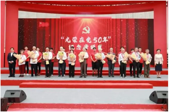 在此次主題黨日上,校黨委書記焦揚(yáng)、校長(zhǎng)許寧生為11名老黨員代表頒發(fā)“光榮在黨50年”紀(jì)念章,青年黨員為老黨員獻(xiàn)花,汲取精神力量,握緊接力棒,六位黨齡逢十的黨員代表依次上臺(tái),齊聲祝福中國共產(chǎn)黨成立100周年,同過政治生日,共度光榮時(shí)刻。