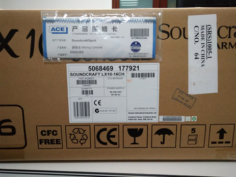 圖3:包裝箱側(cè)面的產(chǎn)品條碼及總代理ACE出具的產(chǎn)品保修卡,請(qǐng)仔細(xì)核對(duì),經(jīng)典產(chǎn)品市面水貨比較多需留意,另目前此款產(chǎn)品的國(guó)內(nèi)總經(jīng)銷為廣州市銳聲燈光音響器材有限公司,一家專做國(guó)外知名品牌的代理專業(yè)音頻公司。