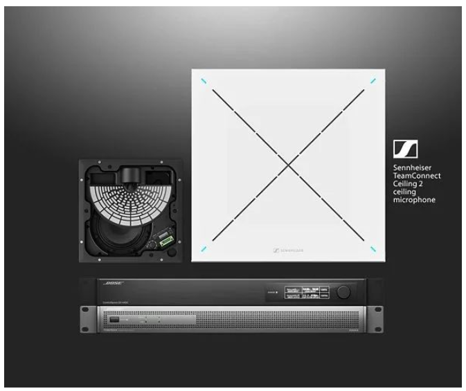 而針對全面集成的會議室,Bose ES1吸頂音頻解決方案則能夠提供完整的遠(yuǎn)程會議音頻系統(tǒng),結(jié)合Bose EdgeMax吸頂揚聲器和合作伙伴Sennheiser的TeamConnect Ceiling 2天花式吊頂陣列麥克風(fēng)(TCC2)、Bose功放和DSP的卓越性能,打造無縫的會議體驗。同時ControlSpace EX遠(yuǎn)程會議音頻處理器提供可擴展的平臺,使得會議系統(tǒng)更加穩(wěn)定可靠。