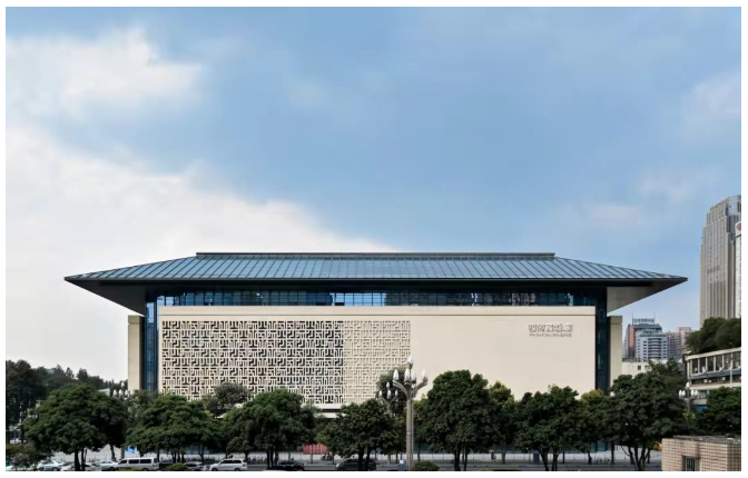 四川大劇院占地約17畝,項(xiàng)目總投資約8.7億元,其中購(gòu)地款3.6億元;項(xiàng)目規(guī)劃總建筑面積約為59 000 m2,其中地上建筑面積27 000 m2,地下建筑面積32 000 m2。外型設(shè)計(jì)以漢代官式建筑風(fēng)格為主,巧妙地將原錦城藝術(shù)宮建筑的文化元素移植過(guò)來(lái),形成了特有的建筑風(fēng)格。