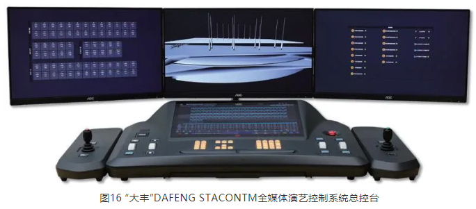 北特圣迪SZCS-6000舞臺控制系統(見圖17)在原舞臺操控系統的基礎上,融合自適應控制、魯棒控制和模糊控制等先進控制技術,采用模塊化編程,可實現多控制臺平行管理、等時授權、實時設備監控和報警分級管控等安全技術措施。通過內部支持的多場景、時間軸、數據流等功能,成功實現舞臺各專業的綜合協同控制。