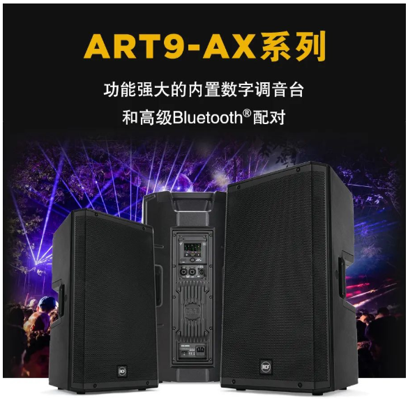 RCF最新推出了全新的ART9-AX系列,ART9-AX是一款具有48V麥克風前置放大器和線路輸入、內置6通道數字調音臺和高級DSP、Bluetooth®(藍牙)流媒體和控制功能的兩分頻揚聲器。適用于任何音頻應用的頂級解決方案。