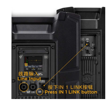 只需按下按鈕"IN 1 LINK",輸入1/L上的信號就會直接發送到輸出端。用于為其他揚聲器提供信號。