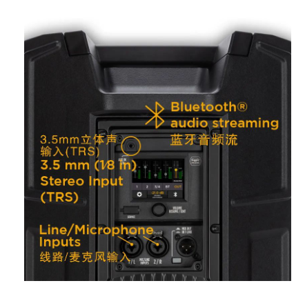 內置調音臺最多可以連接兩個線源或麥克風,帶有單獨的48V幻像電源和一個非平衡的立體聲源。它還可以管理來自Bluetooth®音頻流的無線立體聲信號。