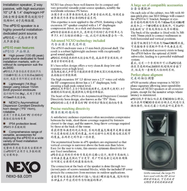 這里的環(huán)境十分優(yōu)雅,而且玻璃區(qū)域較多,不需要很強烈的擴聲系統(tǒng)。因此選擇部署NEXO的小型全頻系統(tǒng)。上海弘韻智能系統(tǒng)工程有限公司的設(shè)計人員利用NEXO專用仿真模擬聲壓測試軟件NS-1對場地進行構(gòu)建,并與酒店方的團隊討論選項和限制。最終選擇了NEXO ePS10全頻音箱,ID14同軸全頻音箱和IDS110超低頻音箱搭配使用。ePS10單10寸全頻音箱采用長沖程10寸低頻單元和1.4寸音圈高頻壓縮驅(qū)動,低音反射式設(shè)計,箱體利用樺木膠合板,堅固且重量輕。在70Hz到20KHz的頻響實現(xiàn)130dB的峰值聲壓,多用于小型主擴聲與舞臺返送監(jiān)聽。ID14的核心采用定制開發(fā)的同軸單元,1.3寸音圈的4寸低頻驅(qū)動器和1.4寸振膜的高頻驅(qū)動使它能輸出平滑,干凈的聲音。可輸出116dB的峰值聲壓,兩種號角可改變擴散角度,讓它應用到不同的環(huán)境中。作為NEXO現(xiàn)有產(chǎn)品體積最小的音箱,多用于小型環(huán)境補聲和全景聲。IDS110超低頻音箱采用長沖程10寸單元,可輸出125dB的峰值聲壓,多用于搭配ID系列的低頻補充。