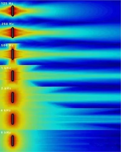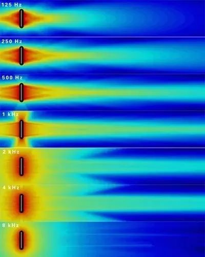 然而,隨著聲音傳播距離的增加,即使典型的定向揚聲器(例如具有90°水平覆蓋角和90°垂直覆蓋角的號筒揚聲器)也會遵從于反平方定律,像理論上的點聲源一樣進(jìn)行聲音的擴(kuò)散(即全向輻射)。