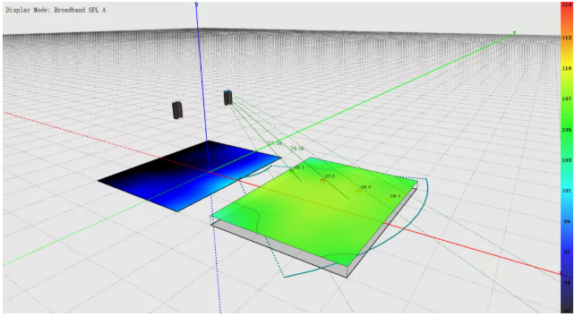 值得一提的是,這次春晚的舞臺是非常干凈的,無論是模擬預測,還是實地測量,都顯示出主擴系統(tǒng)對舞臺是幾乎沒有干擾的,聲壓級小且直達聲少,并且最終的實際聽感,主擴系統(tǒng)對舞臺的不良串音是極其微小的。