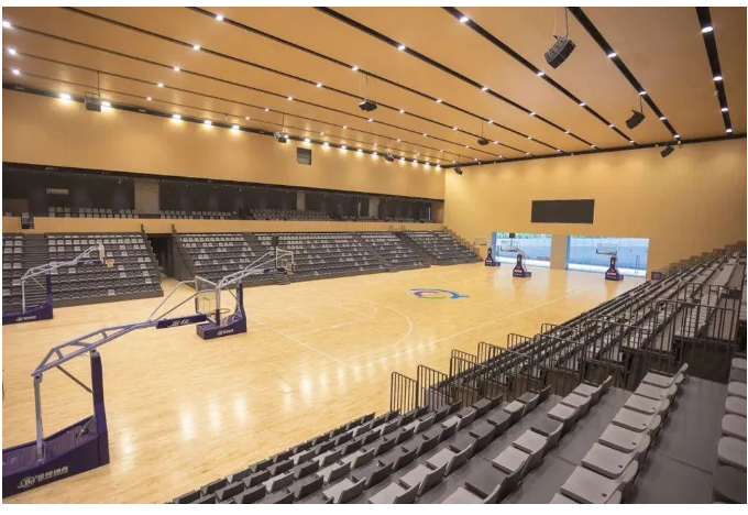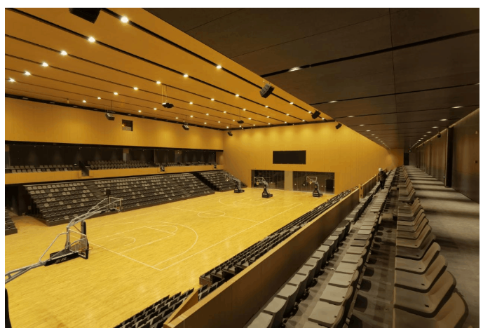 其中一層多功能綜合館,面積超過(guò)1200平方米,包含2000個(gè)坐席和3個(gè)籃球全場(chǎng),可以承辦中小型賽事和活動(dòng)。在擴(kuò)聲系統(tǒng)的選擇上,面臨著場(chǎng)館層面積大,層高深,混響時(shí)間長(zhǎng),設(shè)備選擇需要滿足大聲壓級(jí)、高靈敏度、適合長(zhǎng)距離投射和體積輕巧能減少高空懸掛的負(fù)荷,確保滿足極佳的指向性控制,保證音色的一致性,具備優(yōu)異的安全性和穩(wěn)定性。