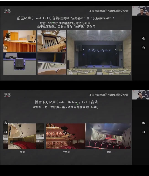 ·前區補聲(Front.Fill)音箱,主要針對前1-3排主擴揚聲器難以覆蓋的區域進行補聲。