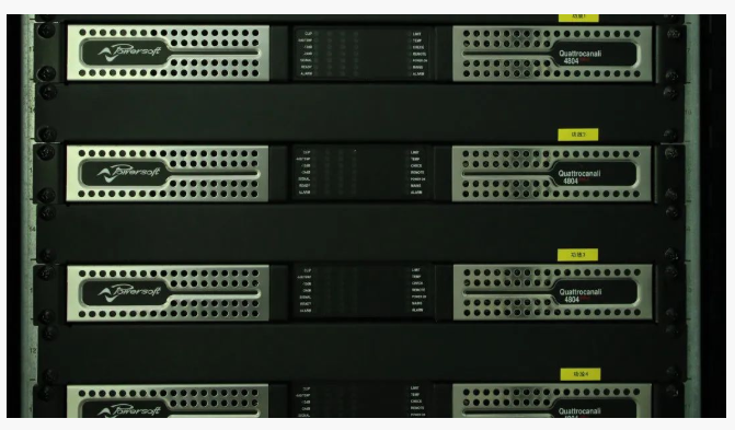 功率放大器全部采用Powersoft Quattrocanali 4804 DSP+DANTE數(shù)字功率放大器。擴聲控制室與功放機房之間采用光纖網(wǎng)絡音頻的方式進行遠距離傳輸,縮減模擬線路傳輸距離,降低線路損耗,有效提升系統(tǒng)內(nèi)音頻信號的傳輸質(zhì)量。