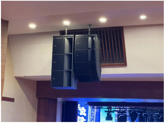 主擴系統明裝線陣列吊掛置舞臺上方,明裝吊掛使聲音不受阻擋,能大幅度減少對聲能的損失并提高清晰度。且A15i外觀干凈整潔符合場地的審美需求,是聽覺效果和視覺效果的最佳解決方案。