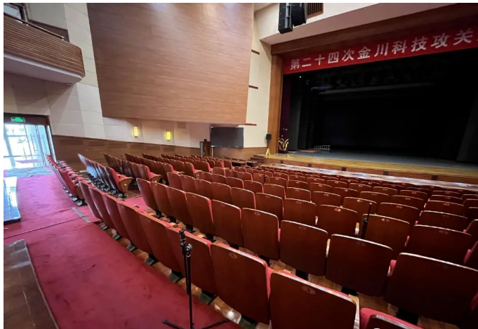 臺唇比較靠近觀眾區(qū)域,選擇小巧的5XT揚聲器補充前排觀眾的聲音能量,有效避免對觀眾視覺體驗造成影響。另外,臺唇高度的設置也十分合理,恰好高于桌子避免被遮擋,使前區(qū)的聽眾獲得更多直達聲。