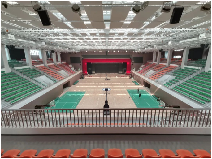 在體育館里,不僅要滿足擴聲的清晰自然,且準確地覆蓋到每一個地方,還要滿足各種不同活動對聲音的要求。因此,技術人員安裝